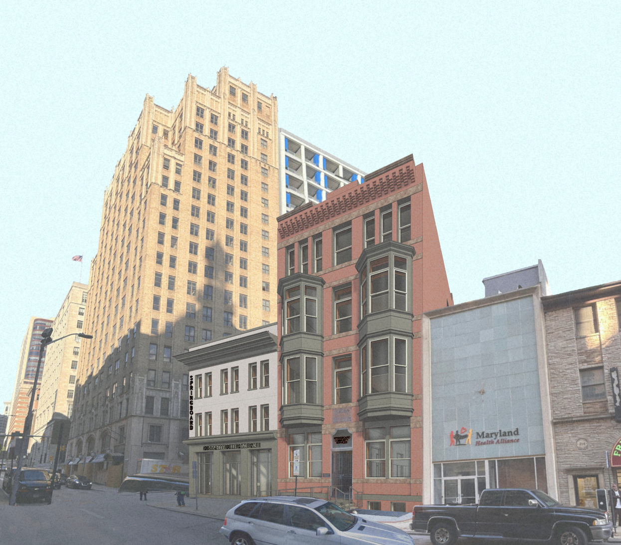 The SCS Youth Training Center will be located at 206-210 E. Lexington Street, Baltimore, MD in the heart of Baltimore’s Central Business District–across the street from the Cummings Courthouse and City Hall. Originally the site of the Frederick Douglass Institute between 1865-1890, the site will build upon a legacy of education, training and support for the community’s disenfranchised. Centrally located to serve those from the East and West Sides of Baltimore, this location is accessible through numerous forms of public transportation and close to numerous amenities, employment and training partners.